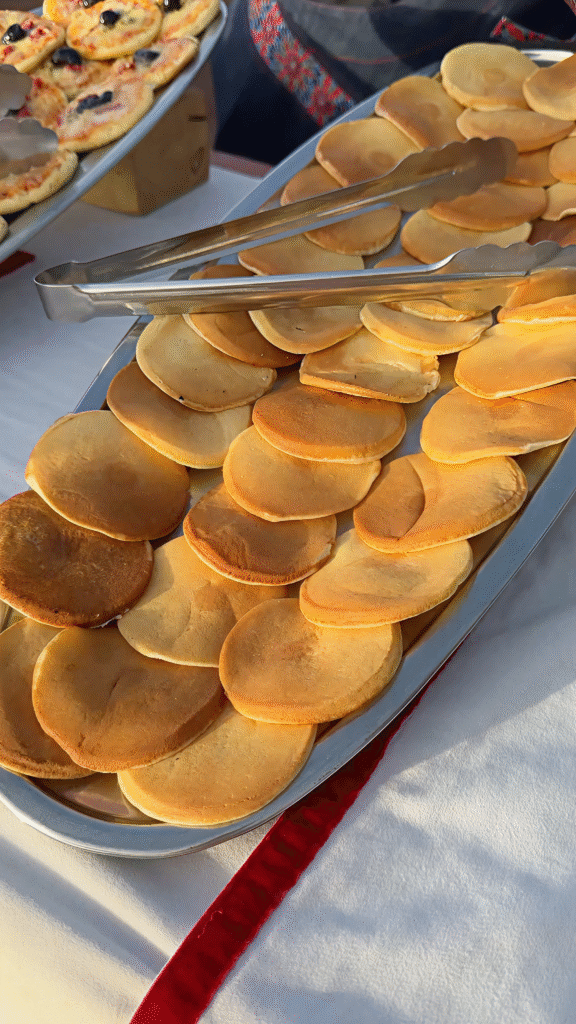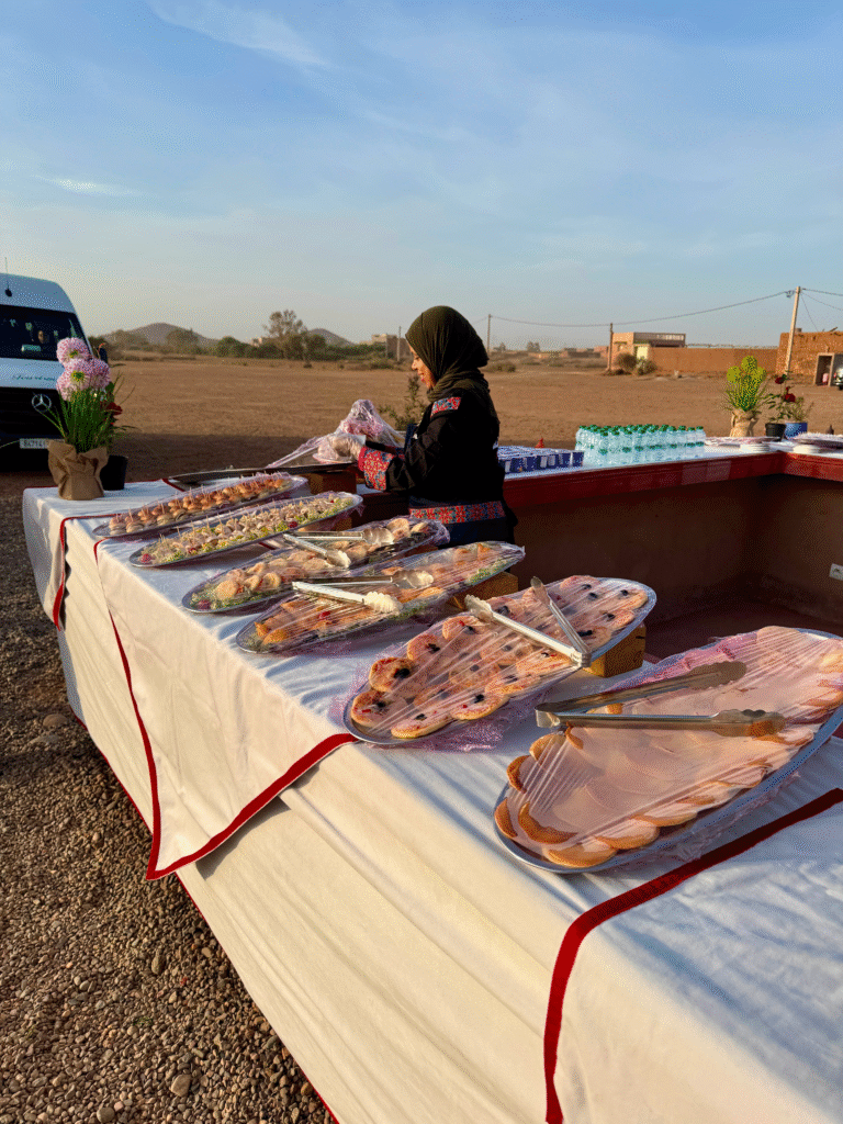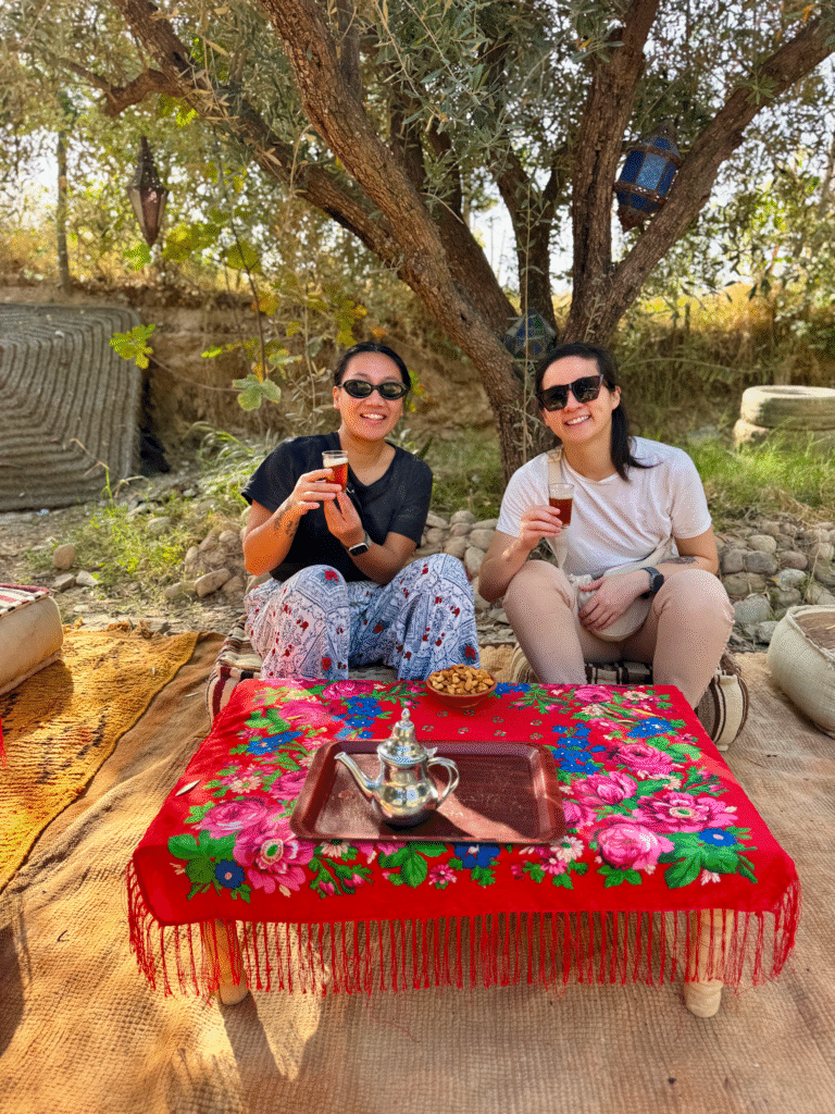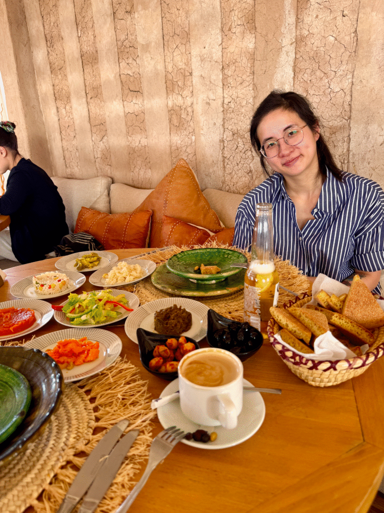 After landing, we were treated to a traditional Moroccan breakfast at the base: mint tea, fresh bread, honey, and pancakes before heading back to our riad by 10 AM for a quick rest before continuing our desert adventure.