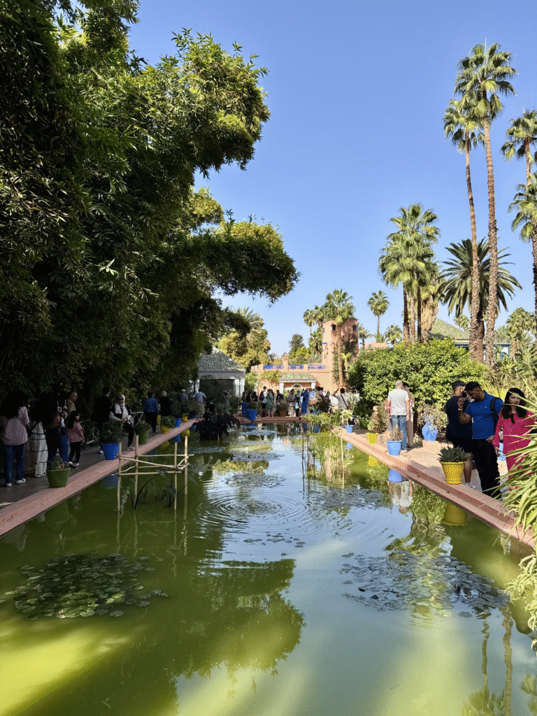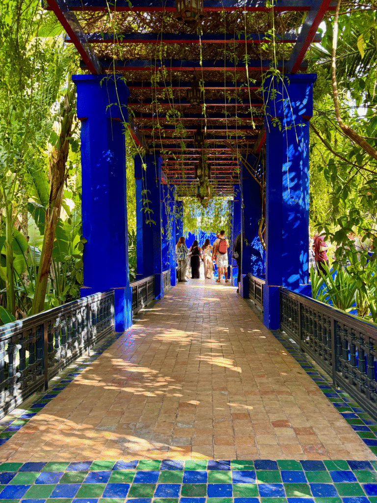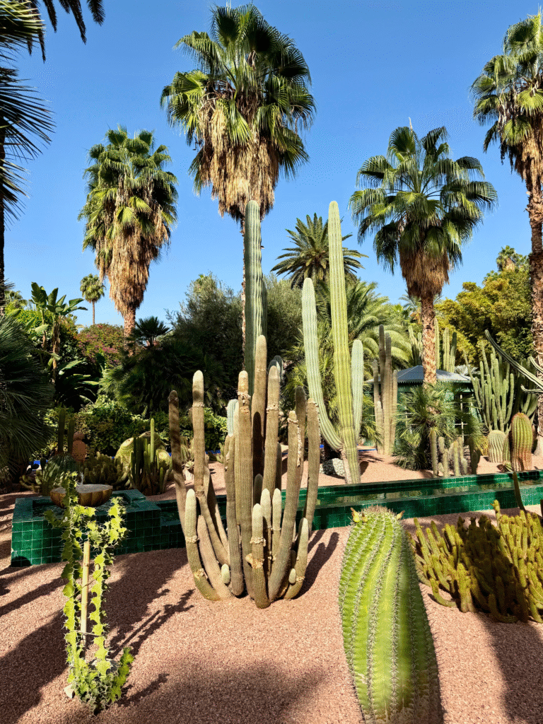 Originally designed by French painter Jacques Majorelle in the 1920s and later restored by Yves Saint Laurent and Pierre Bergé, the garden is a colourful oasis of cobalt blue walls, cacti, bamboo groves, and vibrant flowers. The contrast of deep blues and lush greens against the desert light is mesmerising, a peaceful escape from the bustle of the Medina. We spent about two hours wandering through the garden, taking photos, and visiting the YSL Museum next door, which offers a fascinating look into the designer’s connection with Marrakech.