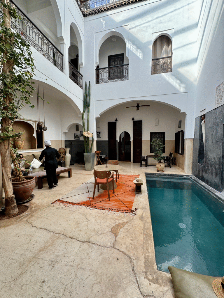 We landed in Marrakech in the afternoon and were greeted by our local representative from Sahara Tours International, who arranged our transfer to Riad Dar Massai, a charming, peaceful riad tucked away in the heart of the Medina. We were warmly welcomed by the host, and to our surprise, we had the entire riad to ourselves that night, which made the stay feel even more special.