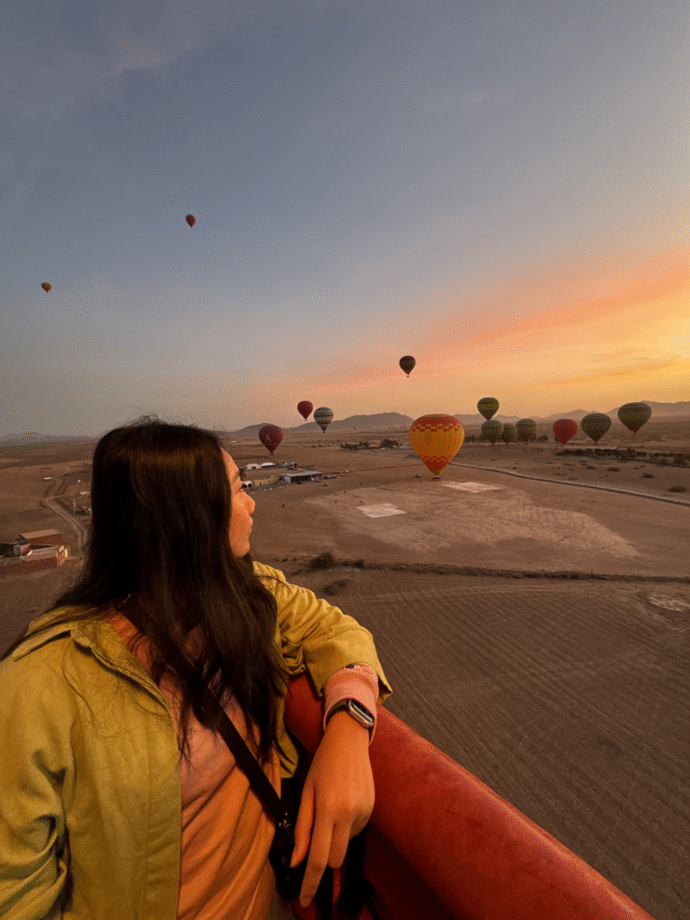 It’s not the same package we booked, but it’s perfectly curated for a 5-7-night adventure that combines the magic of Marrakech, a sunrise hot air balloon ride, and a luxurious night under the stars in the Agafay Desert. Everything is organised for you from airport transfers and local guides to your desert camp stay, making it completely stress-free from start to finish.